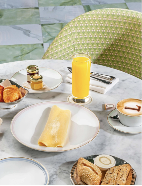 Awaken your senses with the Breakfast Champs-Élysées at Ladurée, a delightful morning indulgence that transports you to the heart of Parisian charm. Delight in a charming basket brimming with three exquisite mini viennoiseries and a selection of freshly baked bread, accompanied by the indulgent companionship of butter, honey, and jam. Savour the artistry of a perfectly crafted omelet, complemented by a refreshing fruit salad that bursts with vibrant flavors. Your choice of freshly squeezed orange or grapefruit juice adds a zesty touch to this culinary journey. And as you sip on Ladurée’s renowned coffee, tea, or rich hot chocolate, you’ll find yourself immersed in the essence of an elegant morning on the Champs-Élysées. All of this can be yours for AED 135, a truly splendid way to start your day in unparalleled style.