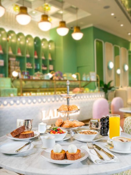 Relish the most lavish brunch with your loved ones being served daily at the popular Parisian patisserie Ladurée. Guests can start the sumptuous occasion with an array of scrumptious dishes to choose from the eclectic menu. Enjoy a selection of mini viennoiseries and bread served with butter, honey and jam; or the Benedictine soft-boiled eggs, 2 slices of warm French toast served with maple syrup or Chantilly cream and jam; or the Ladurée granola, plain yogurt, fresh fruit salad served with 2 macarons; or the freshly squeezed orange or grapefruit juice accompanied by the Ladurée coffee, tea or hot chocolate.